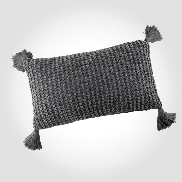 Gris oscuro. – 100% Algodon. Medidas: 30 X 50 cm. Incluye funda con relleno. Tejido a mano.